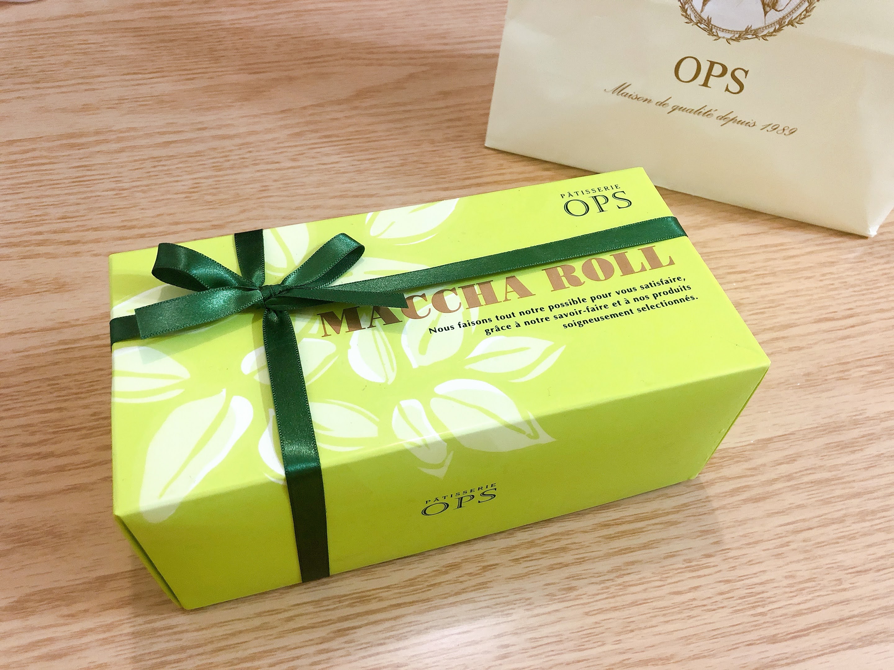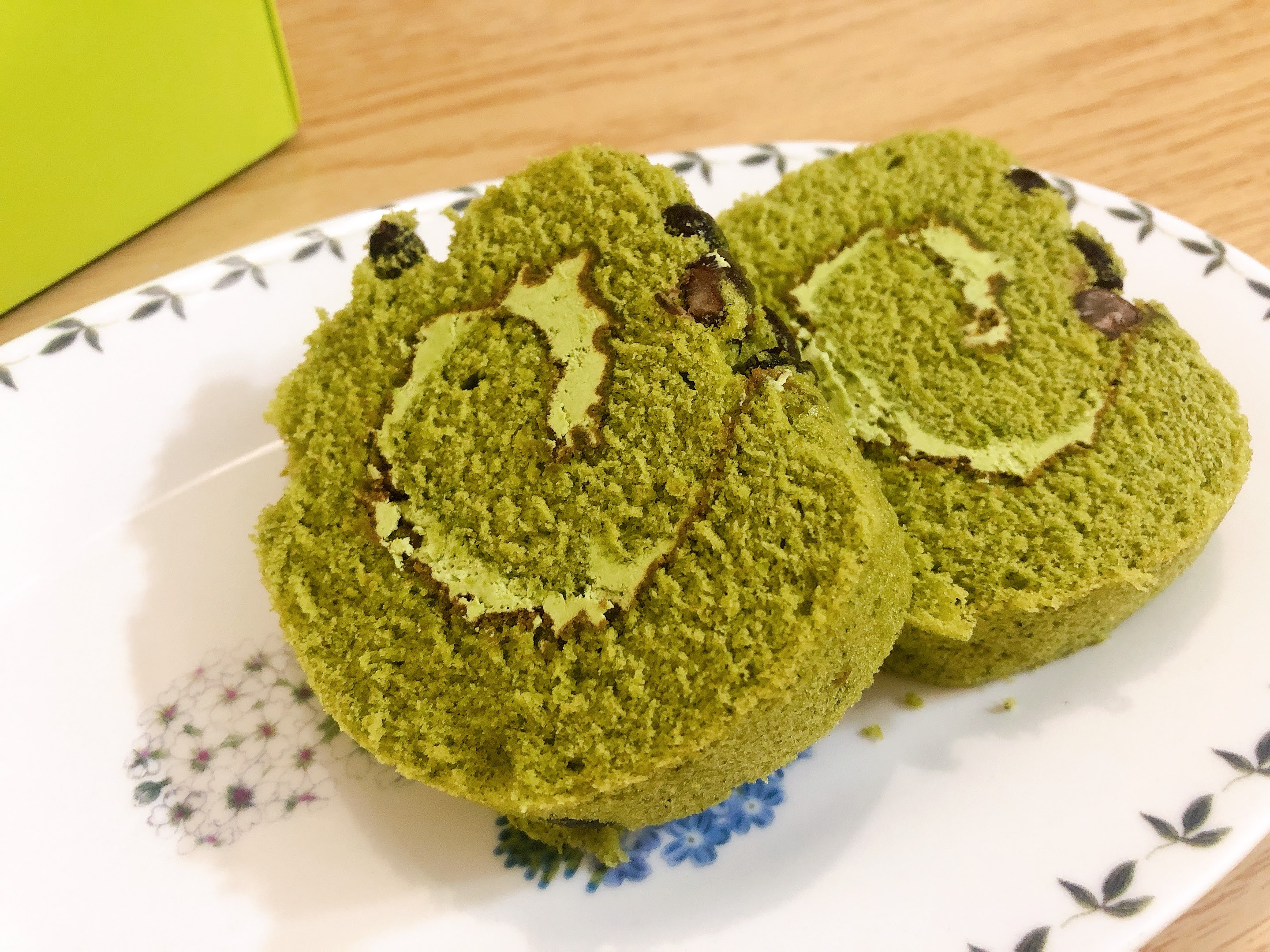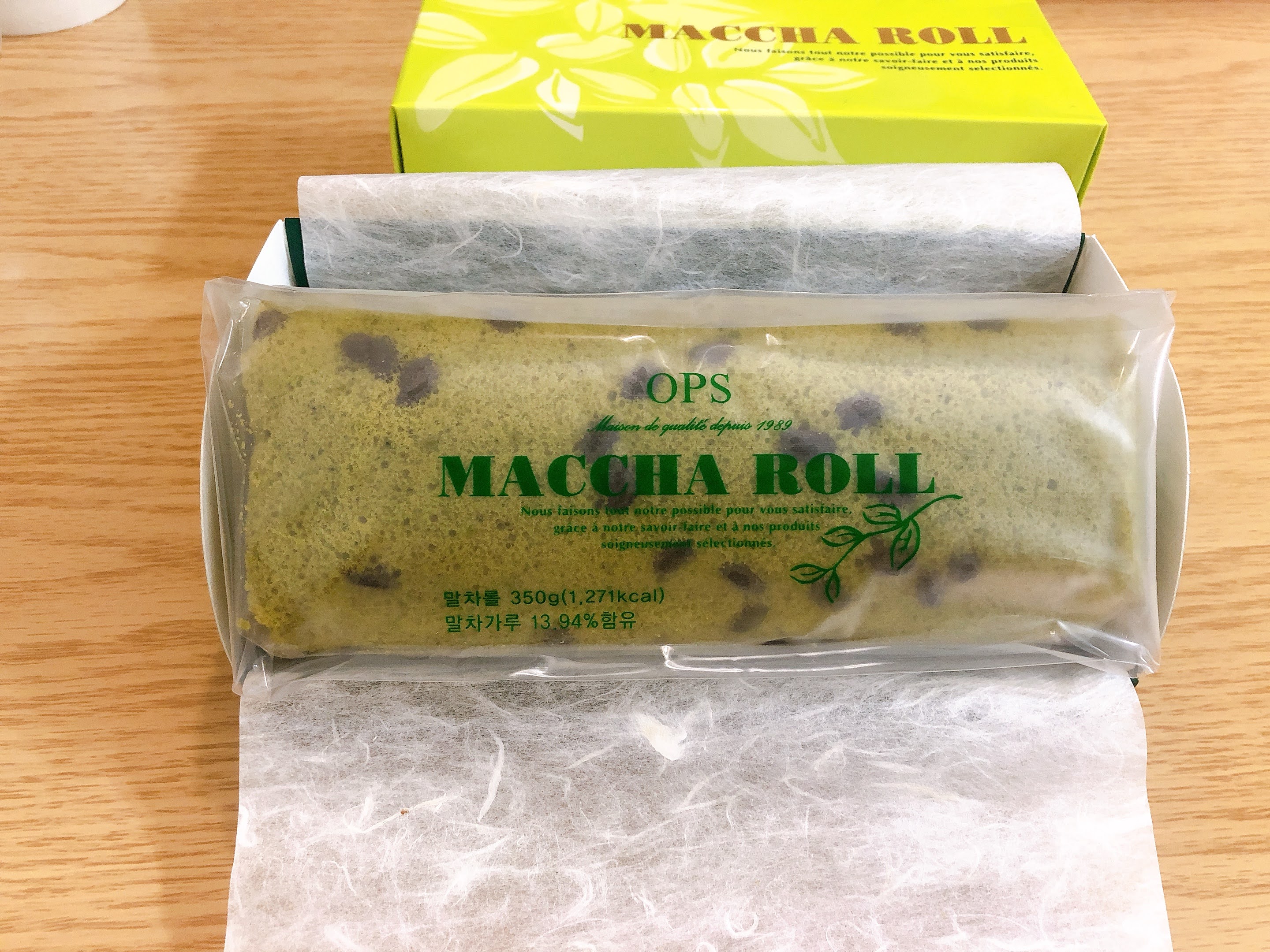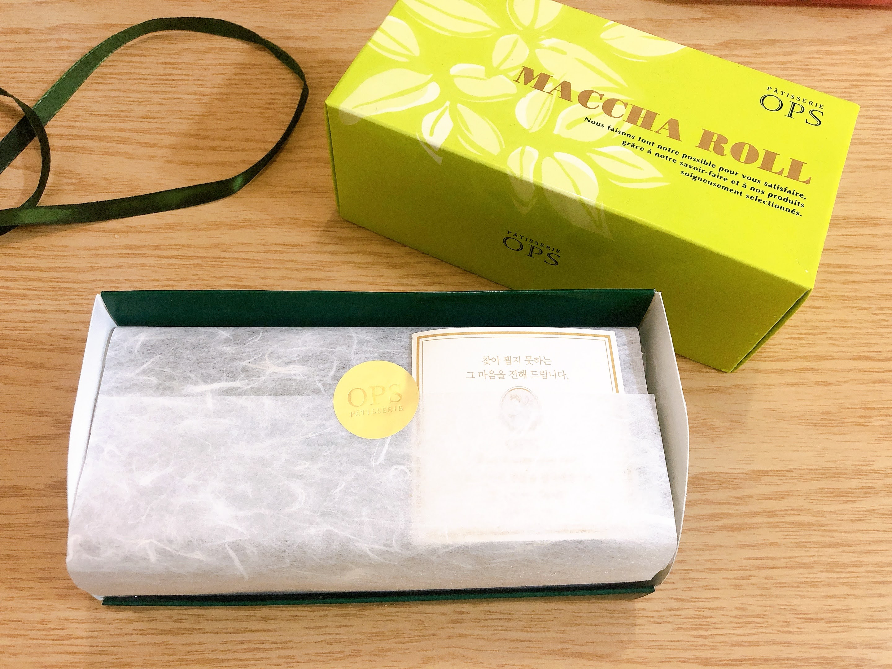 딱 말차롤이 연상되는 상자,