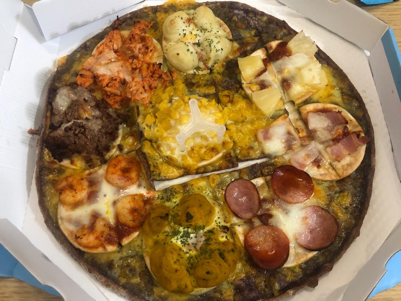 9가지 토핑이 올려져있어요.