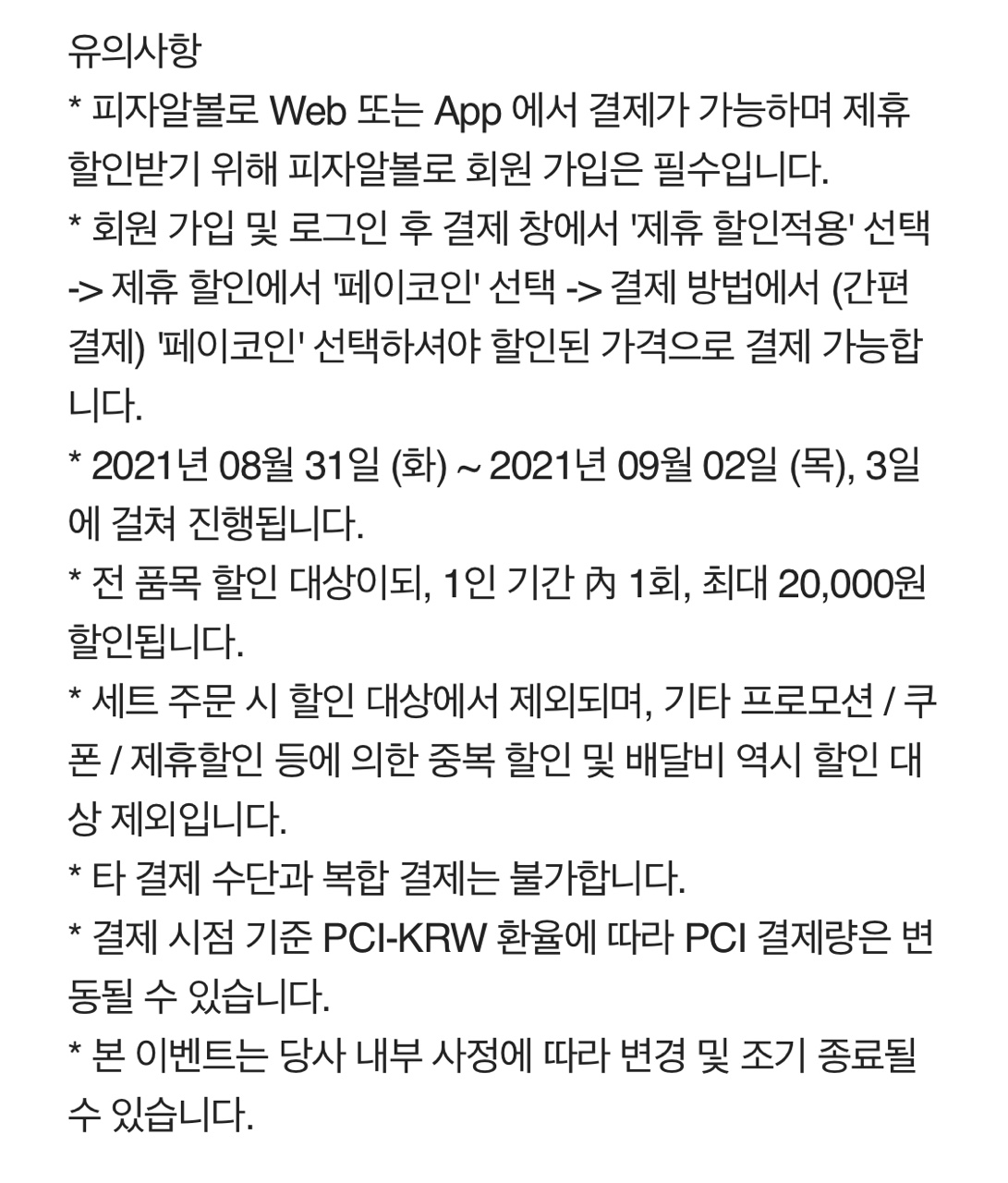피자알볼로 페이코인 80% 할인내역