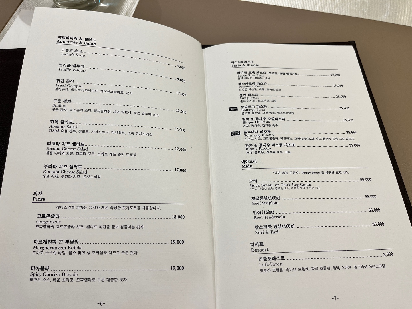 단품 파스타와 리조또 피자가 맛있어서
