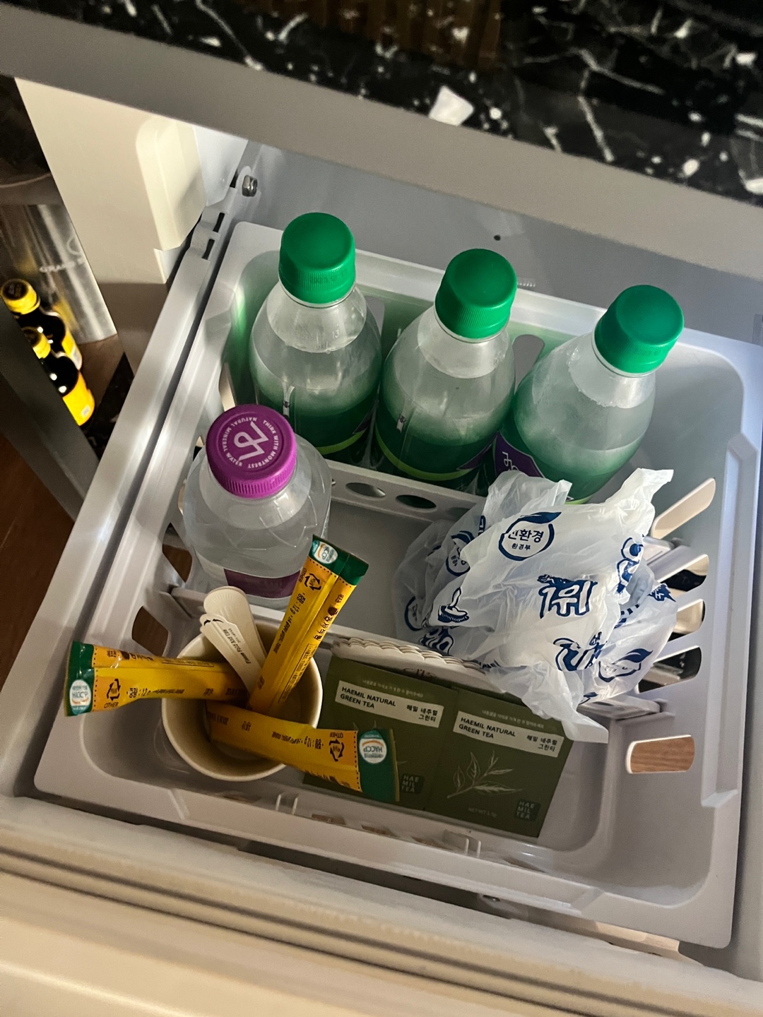 물과 음료도 넉넉하게 채워져 있고