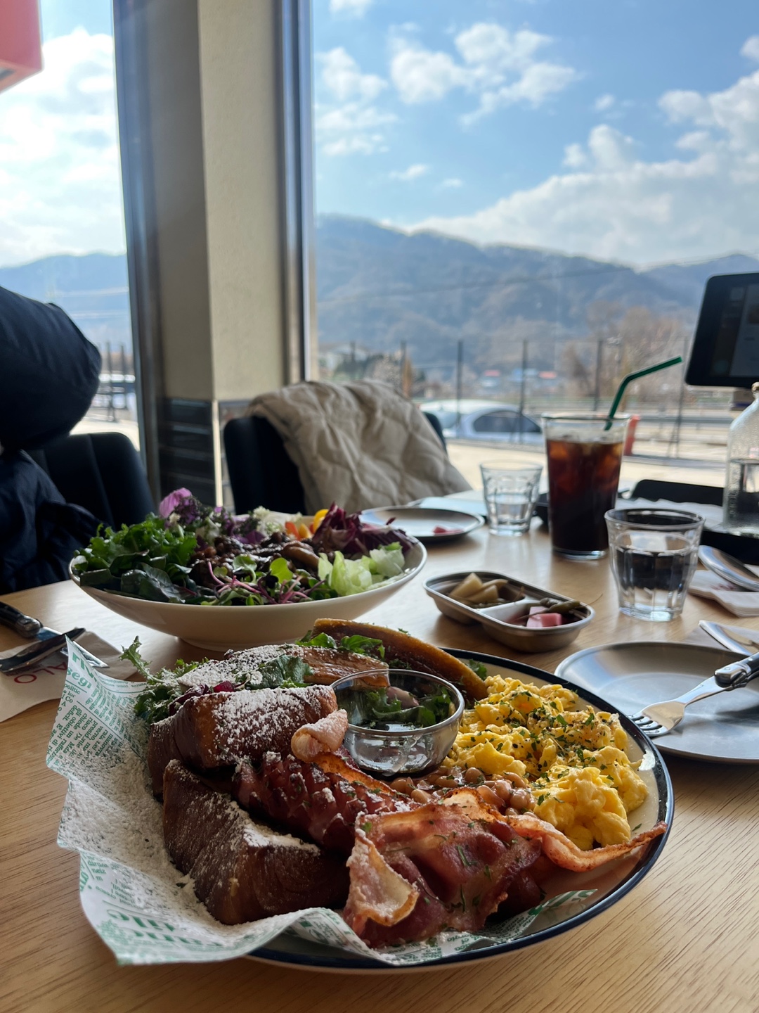 할로브런치와 소고기 샐러드 비빔밥을 주문했다.