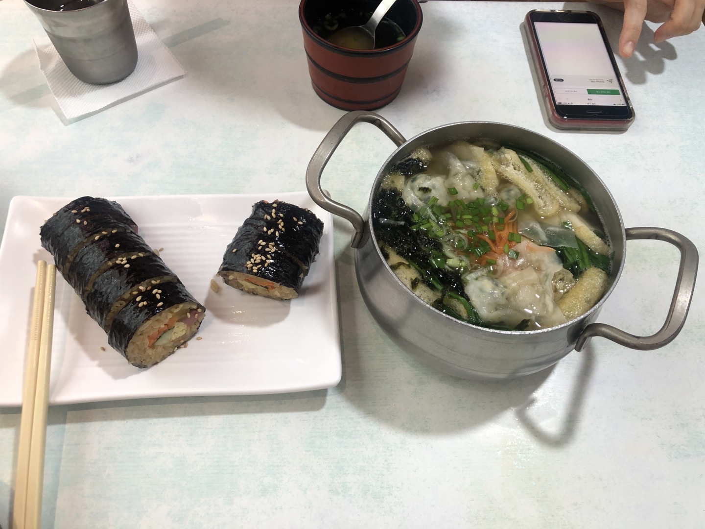 냄비우동과 명화김밥입니다.