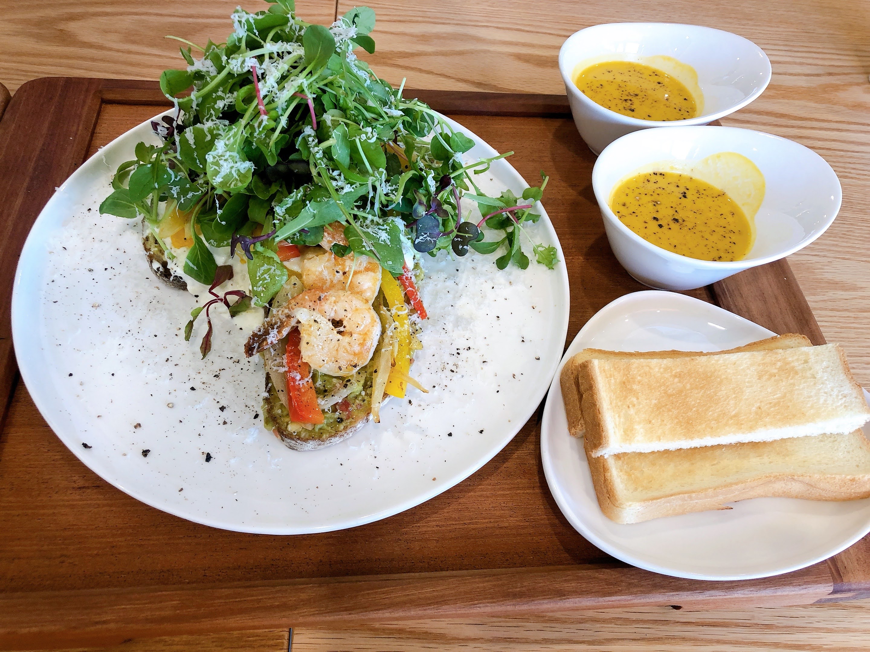 과카몰리 쉬림프 오픈 샌드위치 ,