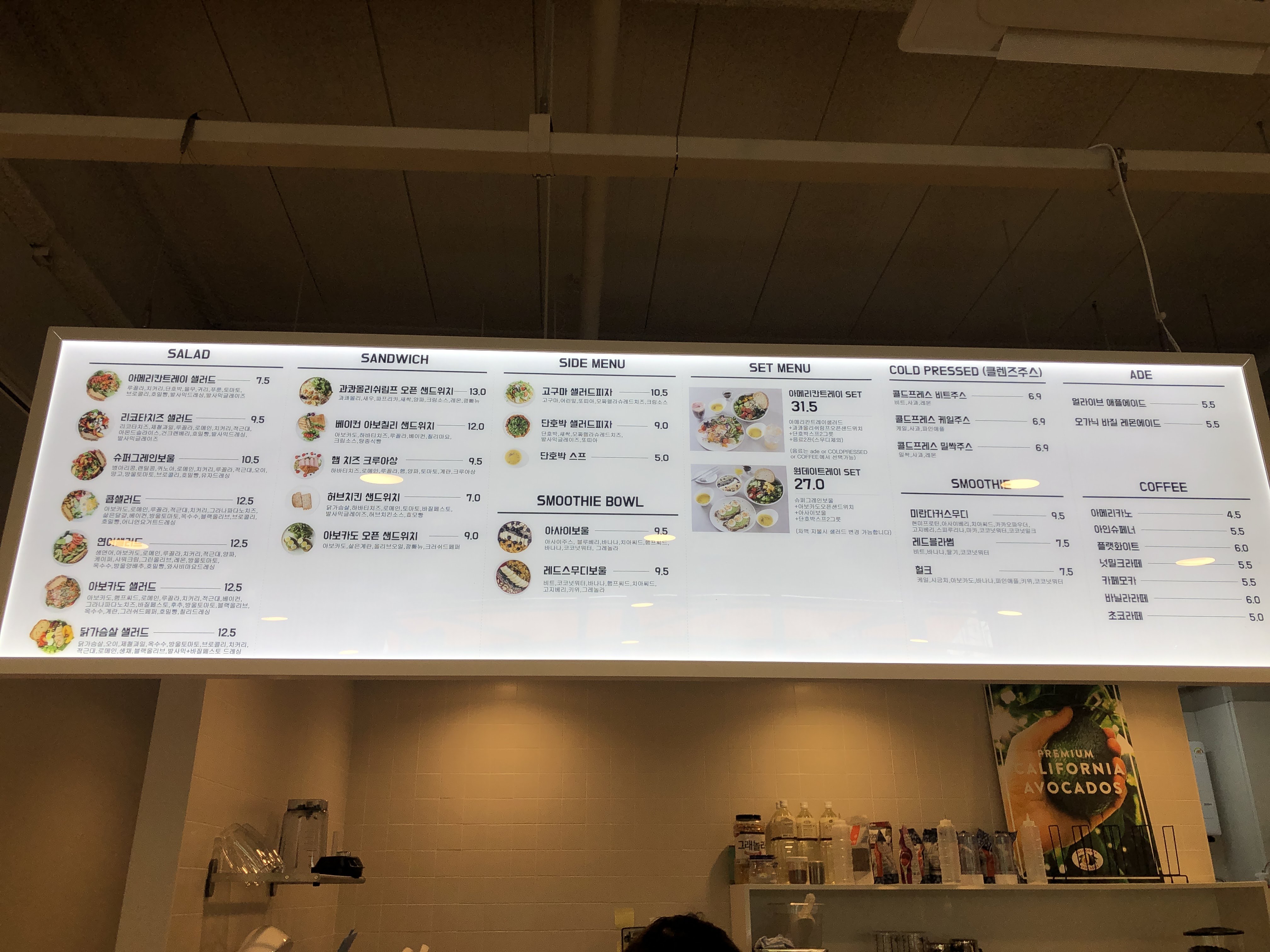샐러드 메뉴 와 케일주스